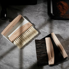 Keep your countertop and coffee station spotless with this magnetic dustpan and cleaning brush set, handcrafted from solid beech wood and fitted with natural horsehair bristles. The design combines elegant aesthetics with practical functionality, offering efficient cleanup of coffee grounds, crumbs, or fine dust. The built-in magnetic feature allows the brush and dustpan to attach securely for compact, space-saving storage.