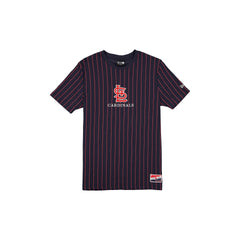 The St. Louis Cardinals Throwback Pinstripe T-Shirt features an embroidered Cardinals logo and wordmark at the front with a New Era jock tag at the left hip.