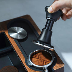This constant pressure coffee tamper is designed to provide precision, consistency, and comfort in espresso preparation. With its 30 lb calibrated pressure system, it ensures an even, level tamp each time, helping support stable extraction. Built from premium materials including stainless steel, aluminum alloy, and walnut wood, it combines durability with a refined aesthetic. Ideal for both professional baristas and home coffee enthusiasts, this tamper offers reliability and style for consistent results.