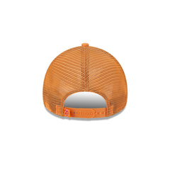 The Tampa Bay Buccaneers Distressed 9FORTY A-Frame Trucker features a distressed screen-printed Buccaneers Historic wordmark and logo at the front panels with a team tag at a snapback closure at the rear and a green undervisor.