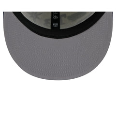 The Tampa Bay Rays Archive 9FIFTY Snapback features an embroidered Rays wordmark and various team logos at the front panels with a snapback closure at the rear and a gray undervisor.