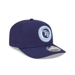 The Tampa Bay Rays Circle Patch 9SEVENTY Stretch-Snap Cap features a screen-printed Rays logo on a woven patch at the front panels with a snapback closure at the rear.