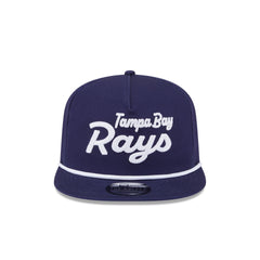 The Tampa Bay Rays Team Text Golfer features an embroidered Rays script at the front panels with a team logo at the right-wear side and a snapback closure at the rear.