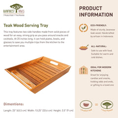 1 × Teak Wood Serving Tray with Handles (16" × 12")