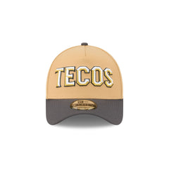 The Tecos 2 Laredos Bronze 9FORTY A-Frame Snapback features an embroidered Tecos logo at the front with a snapback closure at the rear and a gray undervisor.