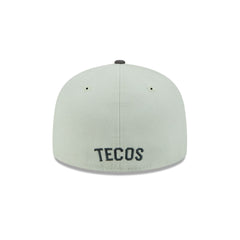 The Tecos 2 Laredos Mint 59FIFTY Fitted Cap features an embroidered Tecos logo at the front panels with a matching team wordmark at the rear and a gray undervisor.