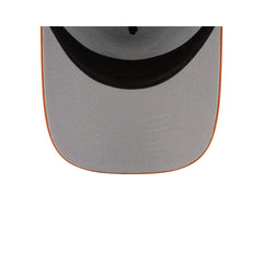 The Texas Longhorns Hand Signs Sidepatch 9FORTY A-Frame Snapback features an embroidered Longhorns logo at the front panels with the team's had sign at the right-wear side. Additional details include a snapback closure at the rear and a gray undervisor.