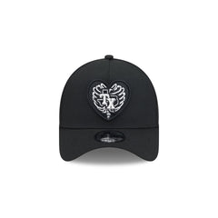 The Texas Rangers Skeletal Heart 9FORTY A-Frame Snapback features a glow-in-the-dark embroidered Rangers heart patch at the front with a snapback closure at the rear and a gray undervisor.