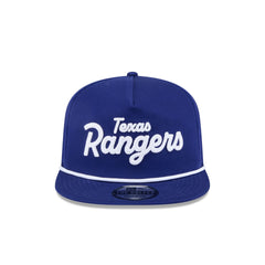 The Texas Rangers Team Text Golfer features an embroidered Rangers script at the front panels with a team logo at the right-wear side and a snapback closure at the rear.