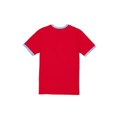 The Texas Rangers Throwback Team T-Shirt features a screen-printed Rangers wordmark and embroidered team logo at the front with a New Era jock tag at the left hip. This t-shirt has a v-neckline.