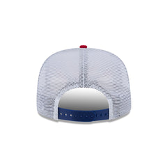 The Texas Rangers Tie-Dye Golfer features an embroidered Rangers logo at the front panels against a tie-dye front panel. Additional details include a snapback closure at a mesh rear and a gray undervisor.