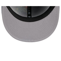 The Toronto Blue Jays Diamond Hero Edition 59FIFTY Fitted Cap features an embroidered Blue Jays onomatopoeia pop logo at the front panels with baseball comic book prints at the front and back panel. Additional details include the MLB Batterman logo at the rear and a gray undervisor.