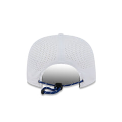 The Toronto Blue Jays Optic White Performance Rope Golfer features an embroidered Blue Jays logo at the front panels with breathable performance fabric throughout the cap. Additional details include a city patch at the right-wear side, an adjustable drawstring closure at the rear, and a blue undervisor.