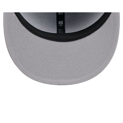 The Toronto Blue Jays Pinstripe League Pin 59FIFTY Fitted Cap features an embroidered Blue Jays logo at the front panels with a League pin at the front right panel. Additional details include pinstripes, a matching MLB Batterman logo at the rear, and a gray undervisor.