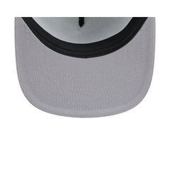The Toronto Blue Jays Retro Script 9FIFTY A-Frame Trucker features a distressed screen-printed Blue Jays script wordmark and team logo at the front panels with a snapback closure at a mesh rear and a gray undervisor.