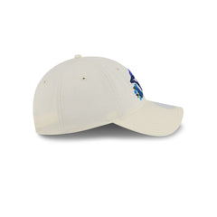 The Toronto Blue Jays Women's Floral Stitch 9TWENTY Adjustable Cap features an embroidered Blue Jays logo with matching flowers at the front panels and an adjustable D-Ring closure at the rear.