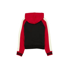 The Toronto Raptors Throwback Women's Hoodie features a twill applique Raptors wordmark above an embroidered team logo at the front. Additional details include adjustable drawstrings at the hood and a New Era jock tag at the left hip.