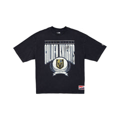 The Vegas Golden Knights Throwback Boxy T-Shirt features a screen-printed Golden Knights graphic at the front and a New Era jock tag at the left hip.