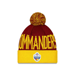 The Washington Commanders Madrid Game Pom Knit features an embroidered Commanders logo at the front cuff with a Madrid Game patch at the rear and a one-time removable pom.