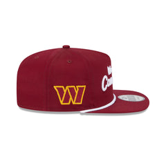 The Washington Commanders Team Text Golfer features an embroidered Commanders script at the front panels with a team logo at the right-wear side and a snapback closure at the rear.