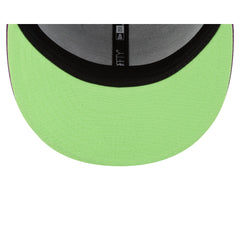 The Wisconsin Timber Rattlers Halloween Purple 59FIFTY Fitted Cap features an embroidered Timber Rattlers themed logo at the front panels with a matching MiLB Batterman logo at the rear, a purple visor, and a green undervisor.