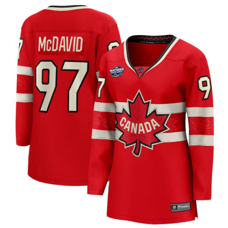 Women's Canada Fanatics Red 2025 4 Nations Face-Off Breakaway Jersey - Connor McDavid