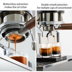 Two Extraction Modes: Use bottomless for visual flow control or attach the dual-spout base for standard espresso shots.