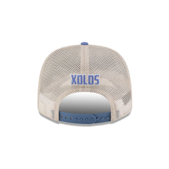 The Xolos Dual Logo 9SEVENTY Trucker features the Xolos primary and alternative logos embroidered at the front panels with a matching team wordmark above a snapback closure at the rear. Additional details include a blue visor and a gray undervisor.